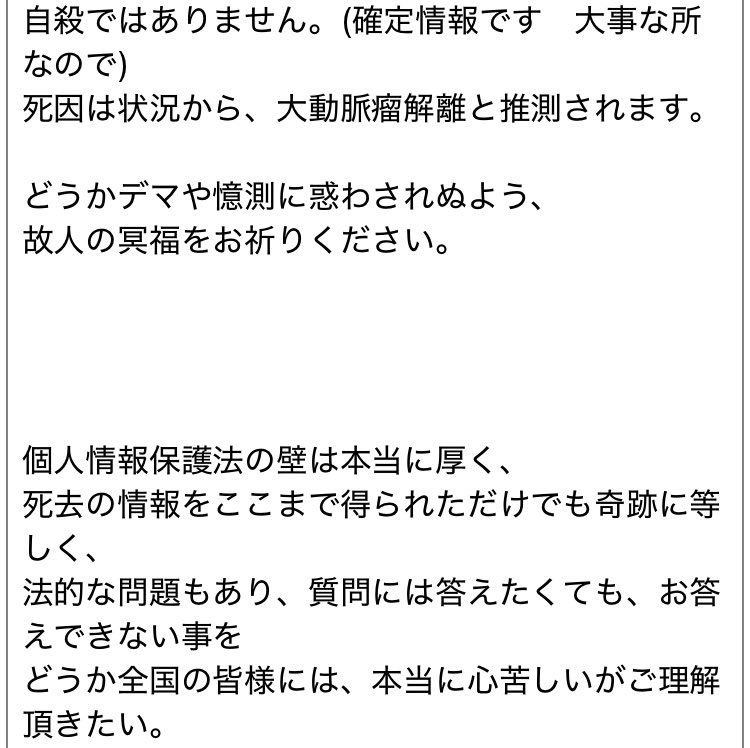 どうかデマや憶測に惑わされぬよう、 故人の冥福をお祈りください。