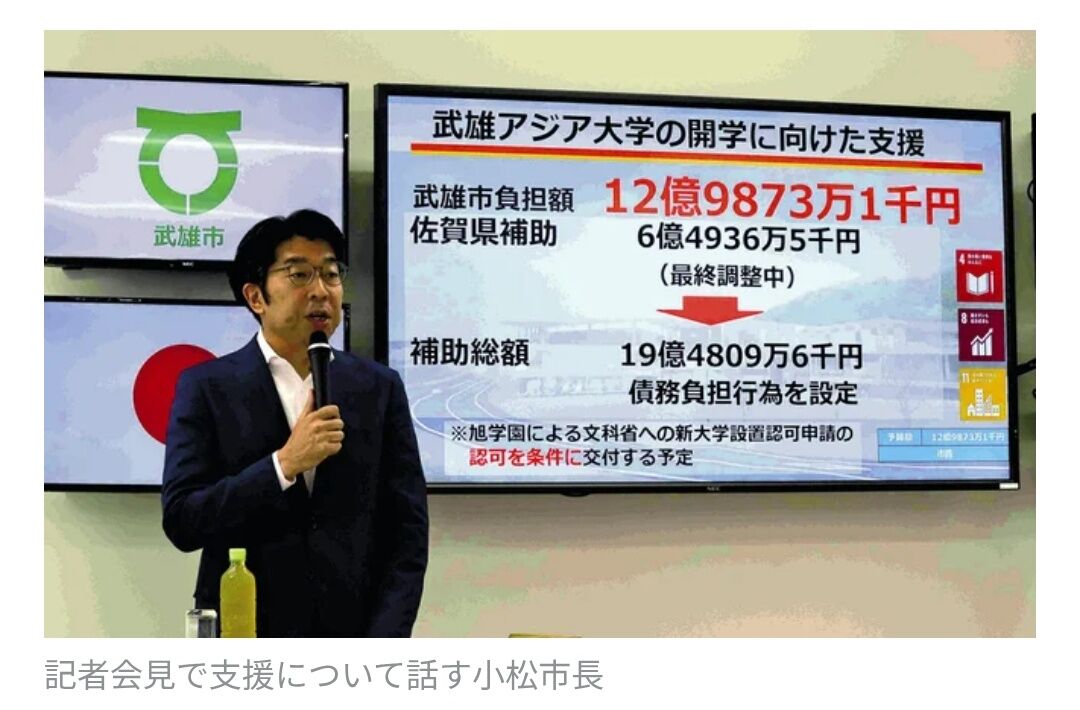 佐賀女子短期大学(佐賀市)を運営する学校法人旭学園(佐賀市)は29日、2026年4月の開学を目指す「武雄アジア大学」(佐賀県武雄市)について、文部科学省から設置認可を受けたと発表した。国立の佐賀大学(佐賀市)、私立の西九州大学(佐賀県神埼市)につづき、県内では3つめの四年制大学になる。