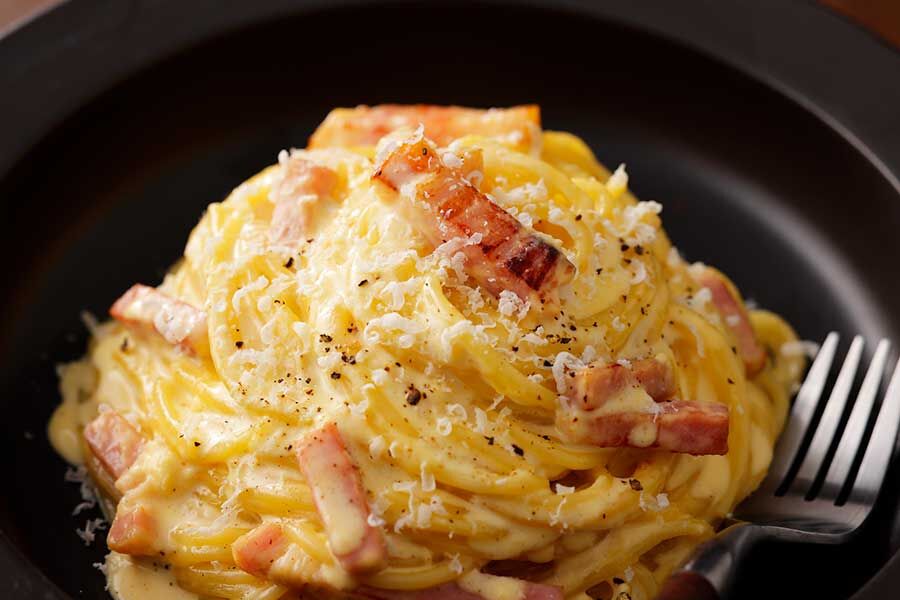 実は、イタリア人にとってナポリタンよりも許せないパスタがあります。それは、日本では一般的な、クリームを使うカルボナーラです。カルボナーラはローマ発祥のパスタで、スパゲティで作るのが一般的。その場合はスパゲティ・アッラ・カルボナーラといいますが、タリアテッレで作ることもあります。