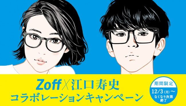 同社は2018年、江口氏が描き下ろした“理想のメガネ男子・メガネ女子”のイラストを店舗に飾るキャンペーンを実施した。