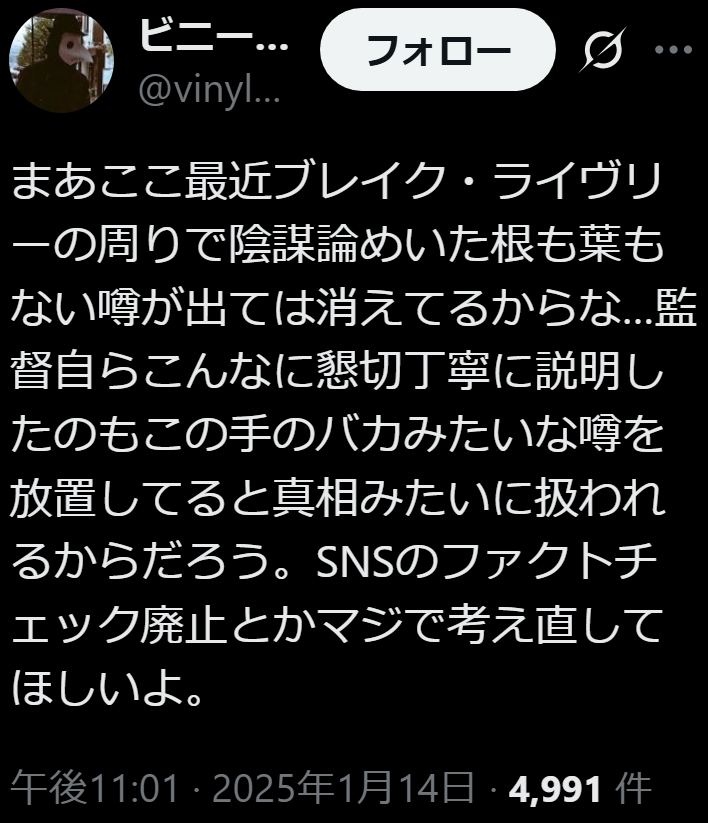 引用元:【訃報】映画評論家ビニールタッキーさん死去 妻が報告「見たい映画があると東京に行き帰路に着く途中で倒れ」 [Ailuropoda melanoleuca★]・https://hayabusa9.5ch.net/test/read.cgi/mnewsplus/1760266964/