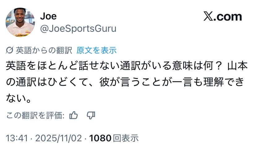山本のコメントの良さがアメリカ人に伝わらないの惜しいよね