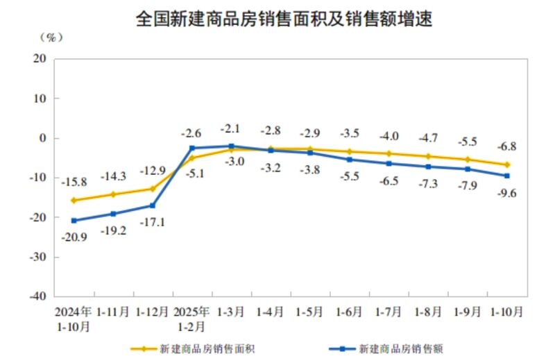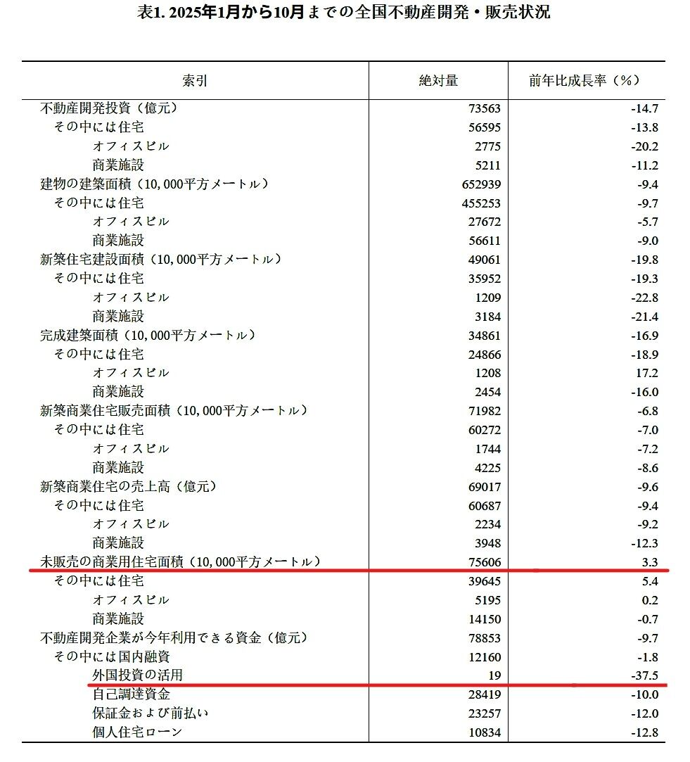 ⇒参照・引用元:『中国 国家統計局』公式サイト「2025年1—10月份全国房地产市场基本情况」