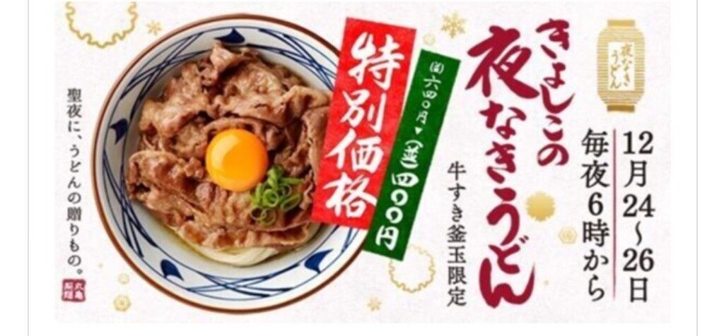 丸亀製麺は3日、クリスマスイブの12月24日のディナー営業を休業すると発表した。