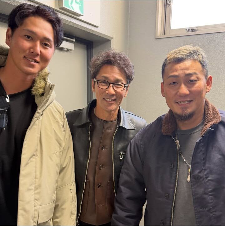 今季限りで現役を引退した中田翔さん、ソフトバンクの秋広優人内野手ら屈強なアスリートと並んでほっそり。