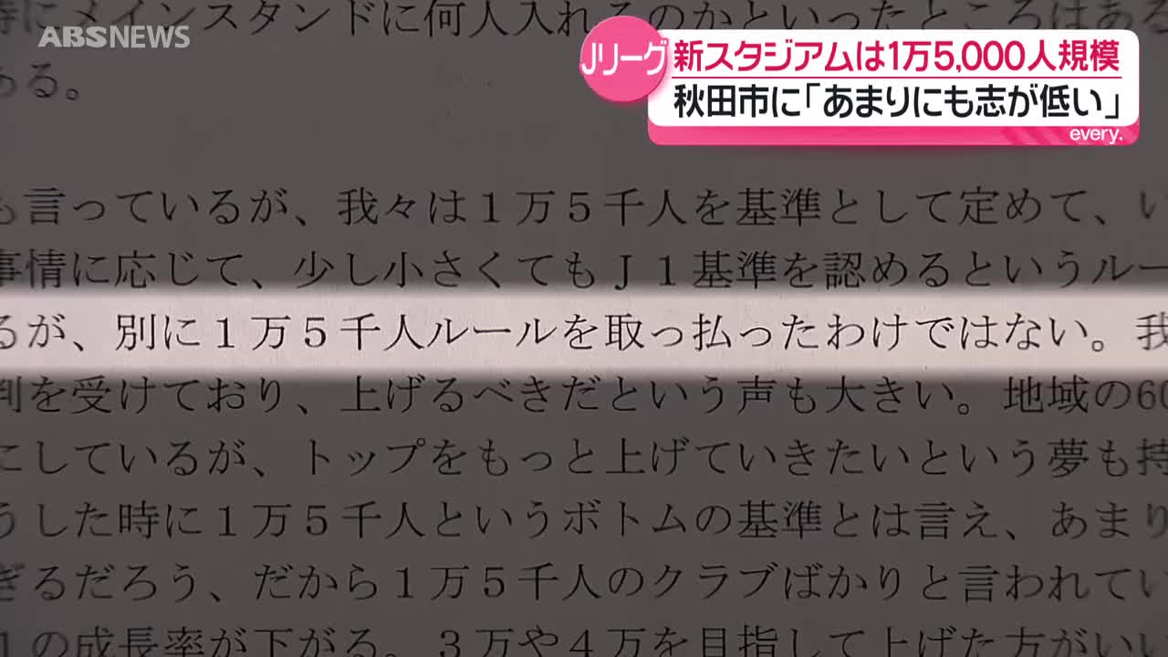 秋田放送は去年11月に行われた秋田市とJリーグとの非公開協議の議事録を市への情報開示請求で入手しました。