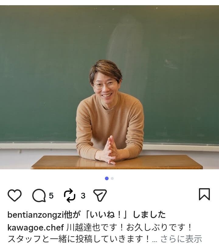 川越さんは15日までにインスタグラムを開設。「川越達也です!お久しぶりです!スタッフと一緒に投稿していきます!皆さん、よろしくお願いいたします」「#川越達也 #川越シェフ」とつづった。