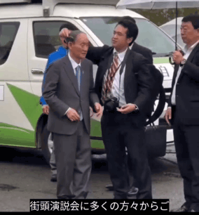 決選投票で、進次郎が負けたとき、壇上で高市の演説を聴いている菅さんは
