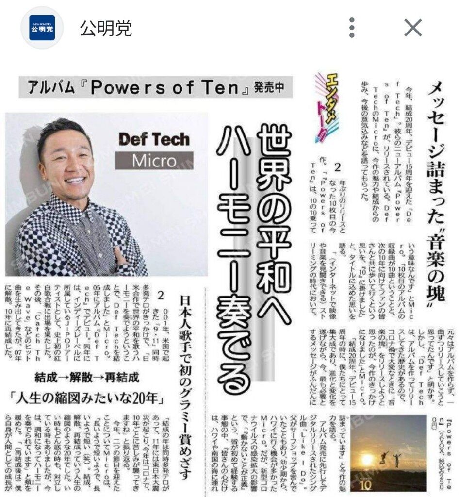 「Def Tech」は3日、公式ホームページでメンバーのMicroこと西宮佑騎容疑者が麻薬取締法違反(所持)容疑で逮捕されたことを受けて、8日に東京・日本武道館で予定していた、デビュー20周年を記念したライブの中止を発表した。