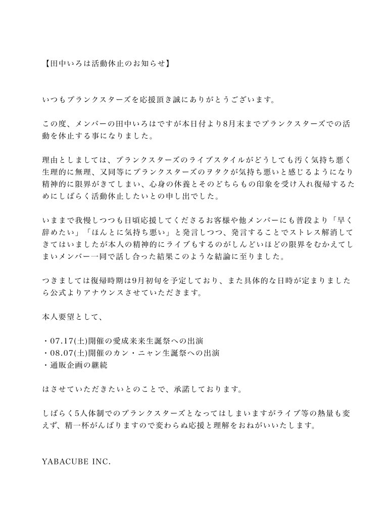 すると同日、事務所は公式Xを更新。この動画に対してではなかったものの「洗剤」騒動に関しては、《洗剤を飲ませてしまった方は引用先一つ目の動画にて焼きそばを食べているファンの方になります。メンバーとは焼きそばをライブ中に食べあう信頼関係もあり当件に関しても当事者間で既に解決しております。》などと説明。