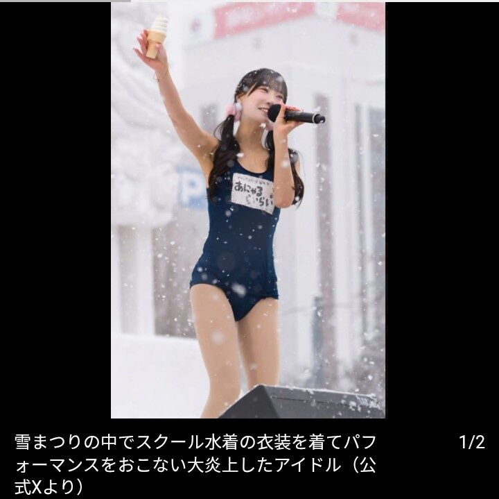 【芸能】現役アイドルが『さっぽろ雪まつり』にスクール水着で登場! ネット驚愕「ぶっ飛んでて推せる」「大丈夫?」「勇気ある」