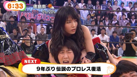 めちゃイケプロレスのAKB過激すぎw骨折する訳だわwww【※動画・画像あり/出演:横山由依・川栄李奈・島田晴香(木崎ゆりあの代わり)など】